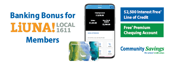 LiUNA 1611 is pleased to partner with Community Savings Credit Union to offer our B.C. members an exclusive banking package.